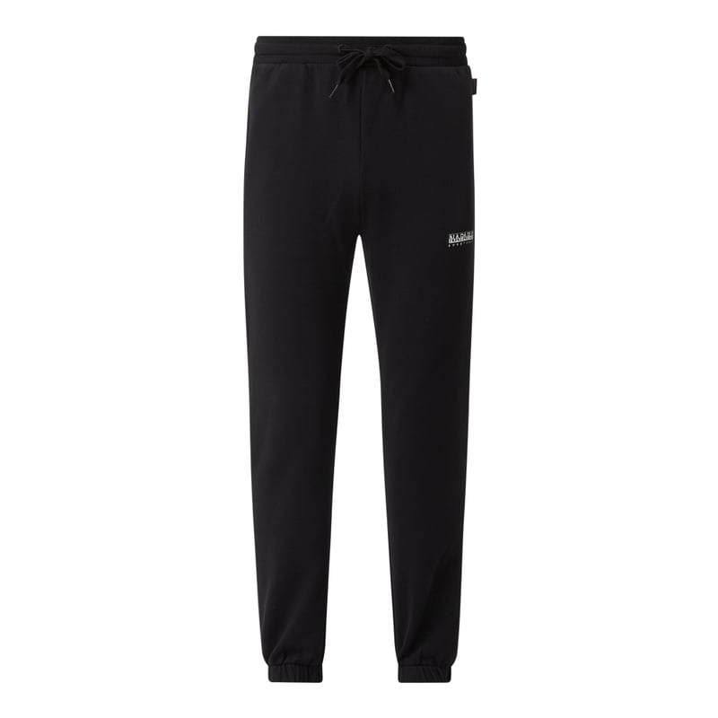 Spodnie dresowe męskie Napapijri, Mieszanka bawełny z dodatkiem tkaniny z recyklingu, Luźny krój, Elastyczny pas z tunelem, Boczne wpuszczane kieszenie, Logo, Elastyczne zakończenia nogawek, Długość wewnętrzna nogawki w rozmiarze M: 76 cm