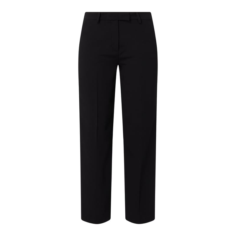 Spodnie materiałowe damskie soyaconcept , Lekki materiał , Luźny krój, Zapięcie na haftkę, guzik i zamek błyskawiczny , Kanty , Wpuszczane kieszenie w stylu francuskim , Ozdobne wypustki z tyłu, Długość wewnętrzna nogawki w rozmiarze 36: 74 cm , Szerokość w pasie w rozmiarze 36: 78 cm