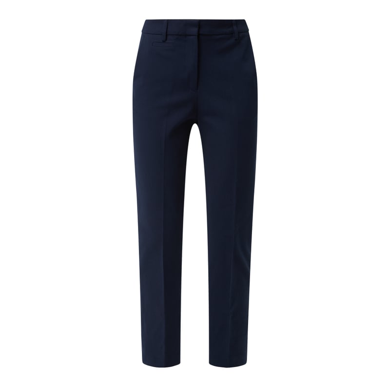 Spodnie materiałowe damskie Esprit, Mieszanka bawełny z dodatkiem wiskozy i streczu, Wąski krój, Zapięcie na haftkę, guzik i zamek błyskawiczny, Wpuszczane kieszenie w stylu francuskim, Kanty, Ozdobne wypustki z tyłu, Długość wewnętrzna nogawki w rozmiarze 36: 72 cm, Szerokość w pasie w rozmiarze 36: 76 cm