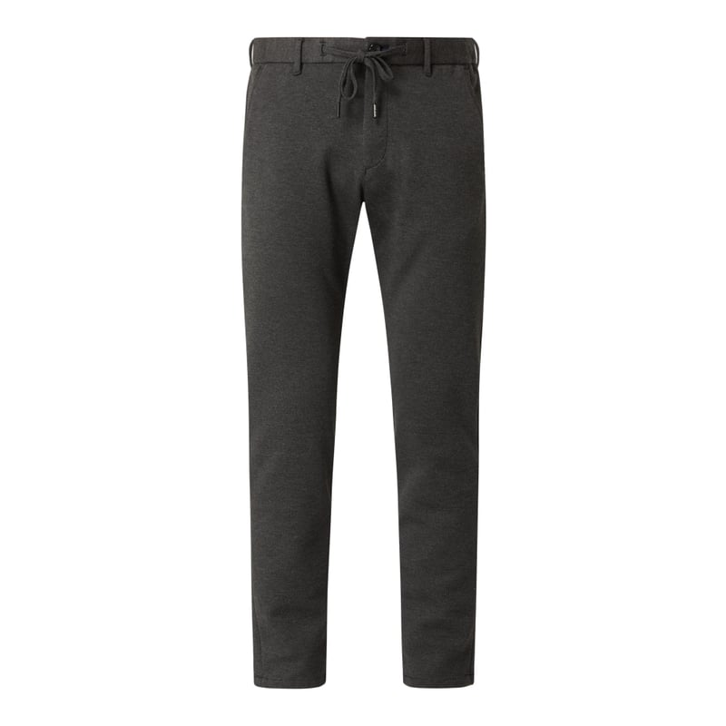 Spodnie męskie JOOP! JEANSY, Mieszanka materiałów z dodatkiem wiskozy i streczu , Krój regular fit , Tunel, Zapięcie na guzik i zamek błyskawiczny, Wpuszczane kieszenie w stylu francuskim, Kieszenie z wypustkami, Detale z logo , Długość wewnętrzna nogawki w rozmiarze 32/32: 75,5 cm, Szerokość w pasie w rozmiarze 32/32: 78 cm