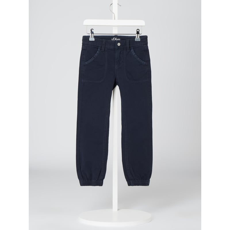 Spodnie dziecięce s.Oliver RED LABEL, Mieszanka bawełny i elastanu , Krój slim fit , Zapięcie na haftkę i zamek błyskawiczny , Regulowana szerokość w pasie , Wpuszczane kieszenie , Elastyczne zakończenia nogawek, Kieszenie z tyłu, Długość wewnętrzna nogawki w rozmiarze 116: 48 cm, Szerokość w pasie w rozmiarze 116: 58 cm