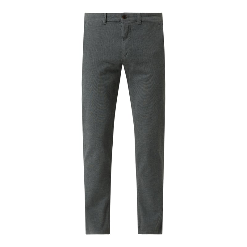 Spodnie męskie JACK & JONES, Bawełna ekologiczna i elastan , Krój slim fit, Tkany wzór , Zapięcie na guzik i zamek błyskawiczny , Wpuszczane kieszenie , Kieszenie z wypustkami , Logo , Długość wewnętrzna nogawki w rozmiarze 32/32:, Szerokość w pasie w rozmiarze 32/32: