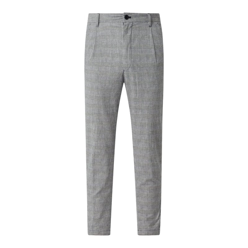 Spodnie z zakładkami męskie JOOP! JEANSY, Mieszanka bawełny z dodatkiem lnu i streczu, Krój loose fit, Kratka glencheck, Elastyczny pas, Zapięcie na guzik i zamek błyskawiczny, Wpuszczane kieszenie w stylu francuskim, Zakładki w pasie, Lamowane kieszenie tylne, Długość wewnętrzna nogawki w rozmiarze 32/32: 67 cm