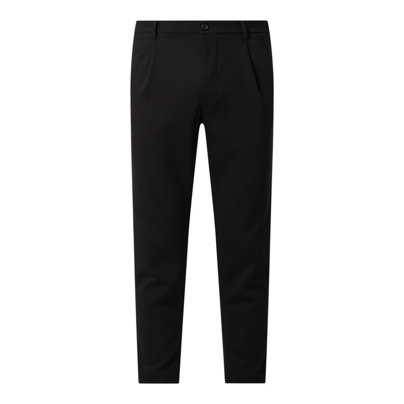 Spodnie z zakładkami męskie JOOP! JEANSY, Mieszanka bawełny z dodatkiem streczu , Krój loose fit, Pas z elastyczną wstawką, Zapięcie na guzik i zamek błyskawiczny, Wpuszczane kieszenie w stylu francuskim, Zakładki w pasie, Lamowane kieszenie tylne, Detal z logo , Długość wewnętrzna nogawki w rozmiarze 32/32: 67 cm, Szerokość w pasie w rozmiarze 32/32: 80 cm