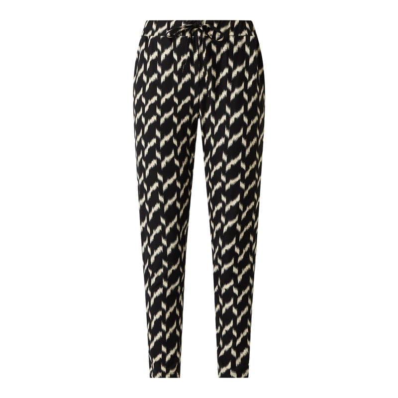 Spodnie palazzo damskie soyaconcept, Poliester z recyklingu i elastan , Luźny krój , Wzór na całej powierzchni , Elastyczny pas z tunelem, Wpuszczane kieszenie , Długość wewnętrzna nogawki w rozmiarze S: 73 cm