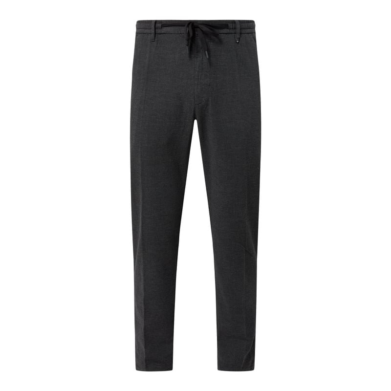 Spodnie sportowe męskie MARC O'POLO, Mieszanka bawełny z dodatkiem wiskozy i streczu, Krój tapered fit, Wzór w pepitkę , Zapięcie na haftkę, guzik i zamek błyskawiczny , Tunel, Wpuszczane kieszenie w stylu francuskim , Kieszenie z wypustkami , Długość wewnętrzna nogawki w rozmiarze 32/32: 71 cm, Szerokość w pasie w rozmiarze 32/32: 82 cm