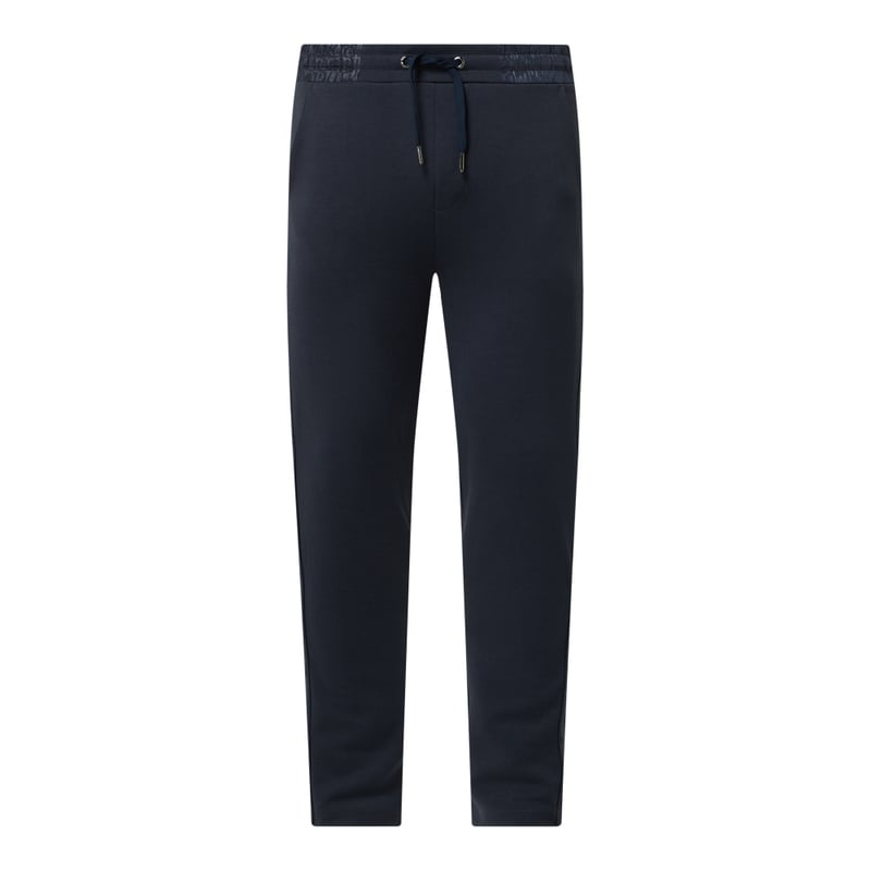 Spodnie sportowe męskie JOOP! JEANSY, Mieszanka wiskozy z dodatkiem streczu, Luźny krój, Elastyczny pas z tunelem, Wpuszczane kieszenie , Ozdobne wypustki z tyłu , Pasek z logo , Długość wewnętrzna nogawki w rozmiarze M: 72 cm