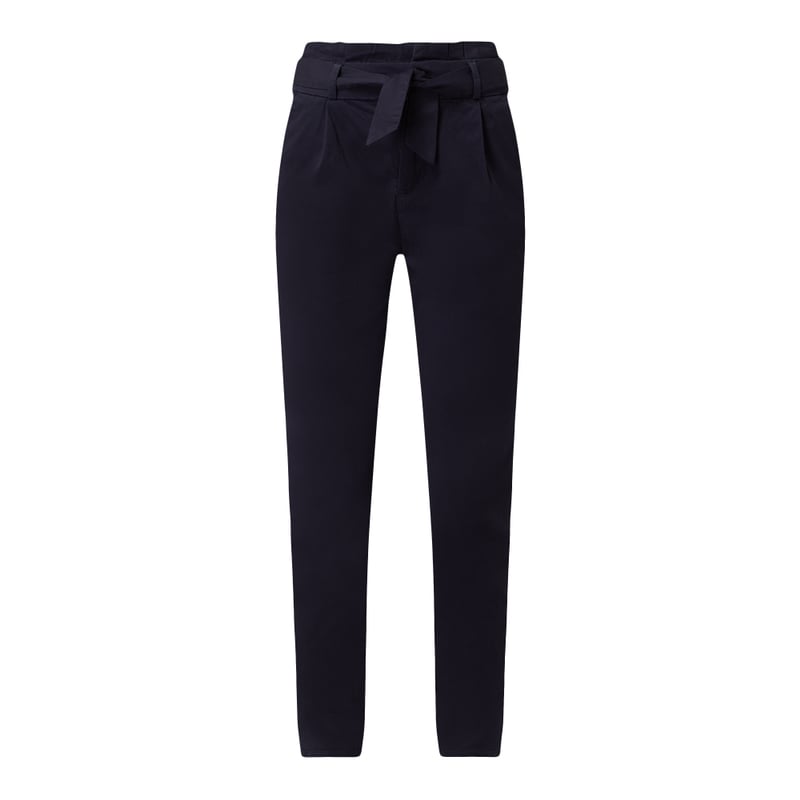 Spodnie typu paperbag damskie VERO MODA, Mieszanka bawełny ekologicznej z dodatkiem streczu , Krój loose fit , Wystający pas z falbanami, Pasek wiązany w talii , Zapięcie na 2 haftki, guzik i zamek błyskawiczny , Zakładki w pasie , Wpuszczane kieszenie , Ozdobne wypustki z tyłu , Długość wewnętrzna nogawki w rozmiarze S/32: 71 cm, Szerokość w pasie w rozmiarze S/32: 72 cm