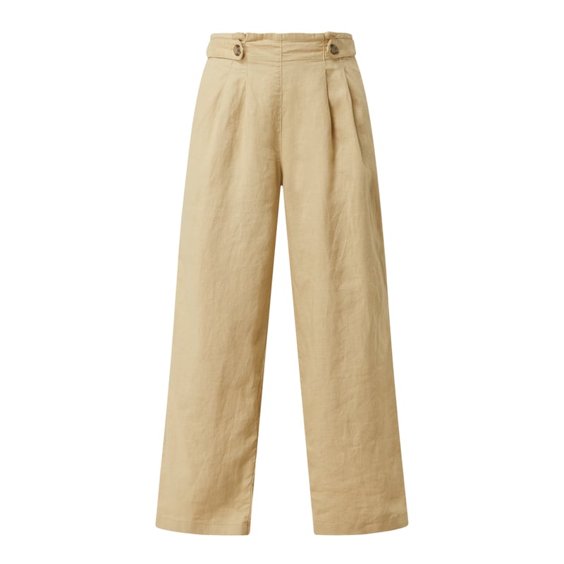 Spodnie z zakładkami damskie Esprit, Czysty len, Szeroka nogawka , Elastyczna wstawka w pasie, Boczne wpuszczane kieszenie, Zakładki w pasie, Ozdobny paseczek, Długość wewnętrzna nogawki w rozmiarze 36: 70 cm