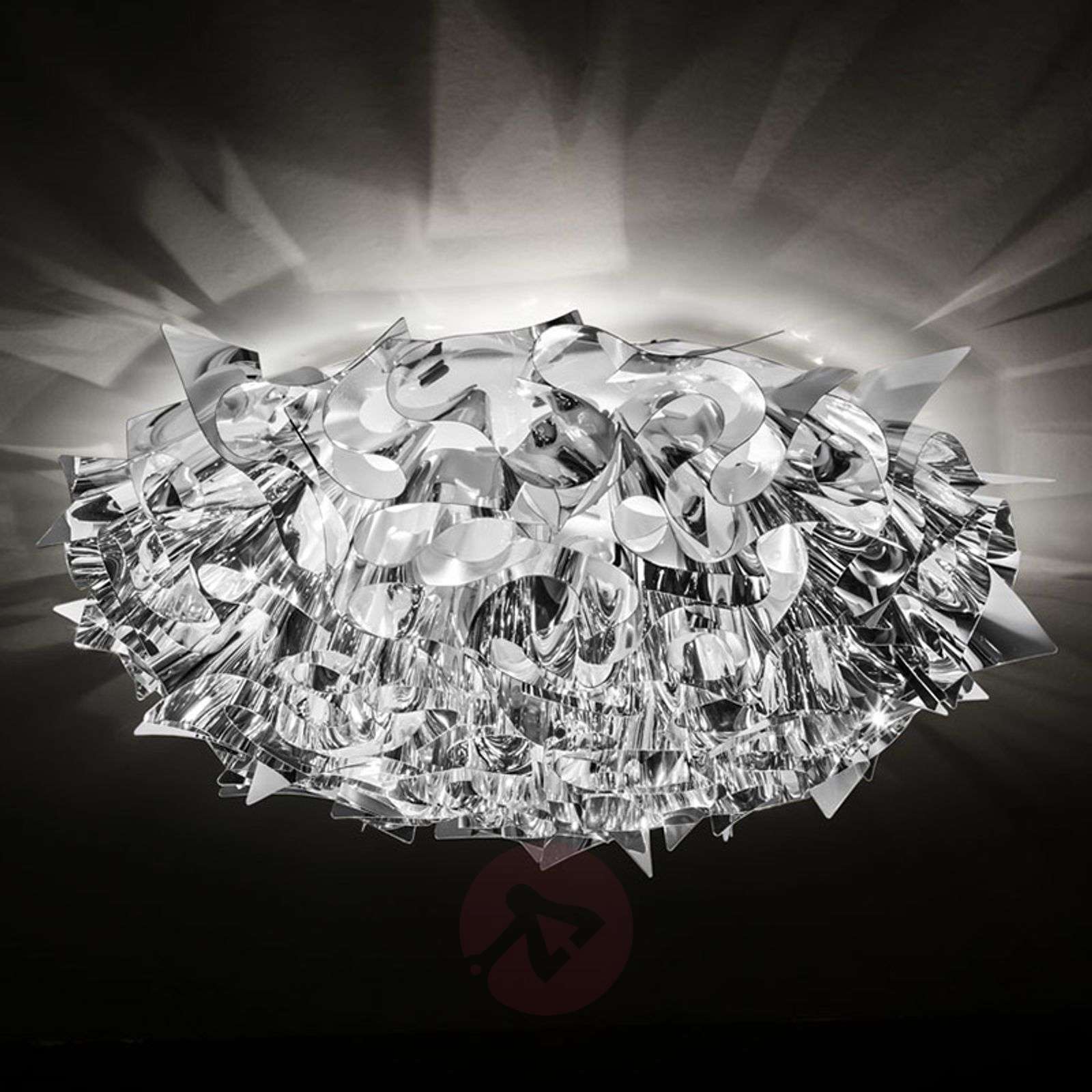 Jasna lampa sufitowa Veli Large z wystawnym kloszem Lampa sufitowa Veli Large to fantastyczny element przyciągający wzrok, nadający ostatnie szlify stylowo zaaranżowanemu wnętrzu. Lampa sama w sobie staje się absolutną atrakcją pomieszczenia. Jest to spowodowane wieloma czynnikami: nie tylko emituje ona bowiem piękne, jasne światło, tworzy wspaniałe efekty świetlne i zachwyca wszystkich mieszkańców i gości domu. Jest również niezwykle praktyczna i łatwa w użyciu. Wreszcie, co nie mniej ważne, materiał jest tu prawdziwą cechą szczególną i ma doskonałą jakość. To ostatnie odnosi się również do perfekcyjnego przetwarzania surowca w gotową lampę sufitową. Lampa sufitowa Veli Large to – jak sama nazwa wskazuje – duży element z serii pięknych lamp sufitowych Veli. Potwierdzają to jej wymiary, ma ona bowiem niezwykle dużą średnicę, wynoszącą 78 cm. Rozpiętość natomiast jest nieduża i wynosi zaledwie 20 cm. Dzięki temu lampa sufitowa Veli Large nie będzie wyglądać topornie. Wręcz przeciwnie, lampa wtapia się bowiem nawet wizualnie w biały sufit. Do zapewniania oświetlenia wykorzystuje się tu trzy żarówki o mocy 20 W, które są ledwo widoczne w kloszu. Dlatego wydaje się, że lampa sufitowa Veli Large świeci sama z siebie. Jeśli w którymś momencie żarówki przestaną spełniać swą funkcję, można je łatwo i bez większego wysiłku wymienić. Klosz przymocowany jest do lampy sufitowej za pomocą praktycznego systemu magnesów. Dlatego też w każdej chwili można go zdjąć. Jako że waży zaledwie 2,95 kg, można go łatwo utrzymać podczas przenoszenia. Ta lampa sufitowa Veli Large wygląda szczególnie ekskluzywnie z racji obecności głównego materiału, z którego wykonano klosz. Ten ostatni został wyprodukowany ze Steelflex®. Jest to materiał specjalnie opracowany przez samą kuźnię designerską. Kuźnia zaś złożyła z jego powodu wniosek patentowy. Dzięki klasie ochronności II ta lampa sufitowa jest bardzo bezpieczna. Klasa efektywności energetycznej: A++