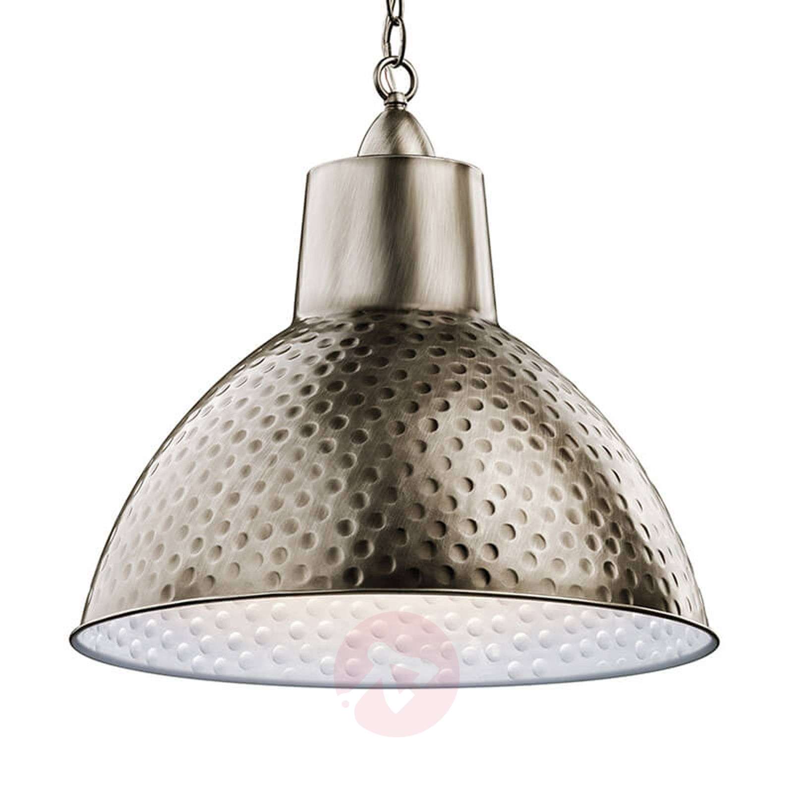 Duża lampa wisząca Missoula z kloszem o niezwykłym wyglądzie Kształt klosza lampy wiszącej Missoula można opisać nawet jako klasyczny. Jednak to, co wyróżnia to piękne źródło światła, zapewniające oświetlenie ogólne lub oświetlenie danej powierzchni, to design klosza. Wykonany jest on z metalu, na zewnątrz ma cynowane wykończenie uderzane młotkiem, które wygląda bardzo elegancko. Wnętrze klosza jest pomalowane na biało, a wypukłości wykończenia młotkiem są tam wyraźnie widoczne jako swego rodzaju wzór. Missoula – lampa wisząca w bardzo niepowtarzalnym stylu, zapewniająca wspaniałe efekty świetlne. Klasa efektywności energetycznej: A++