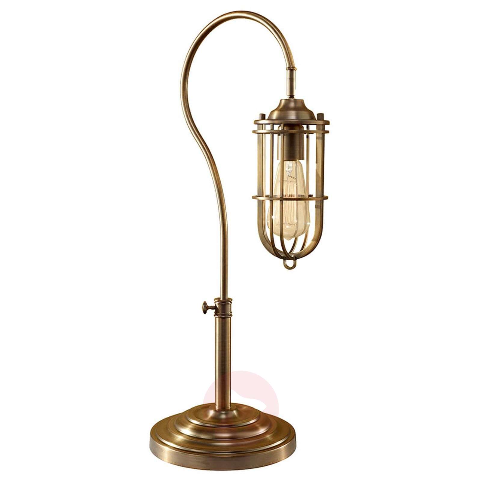 Lampa stołowa Urban Renewal: nastrojowe oświetlenie akcentujące Mała lampa stołowa Urban Renewalw kolorze starego brązu jest w całości wykonana z metalu, klosz składa się tylko z małej metalowej klatki, która chroni zamontowaną żarówkę. Wygięta podstawa jest stylizowana na starą i ma wiele detali przywodzących na myśl źródła światła z początku XX wieku. Lampa stołowa, która sprawdzi się jako lampa biurkowa oraz dodatkowe źródło światła na stole w salonie. Klasa efektywności energetycznej: A++
