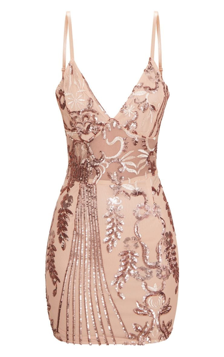 Sukienka Kwiat Orientu - Bodycon - Rose Gold
