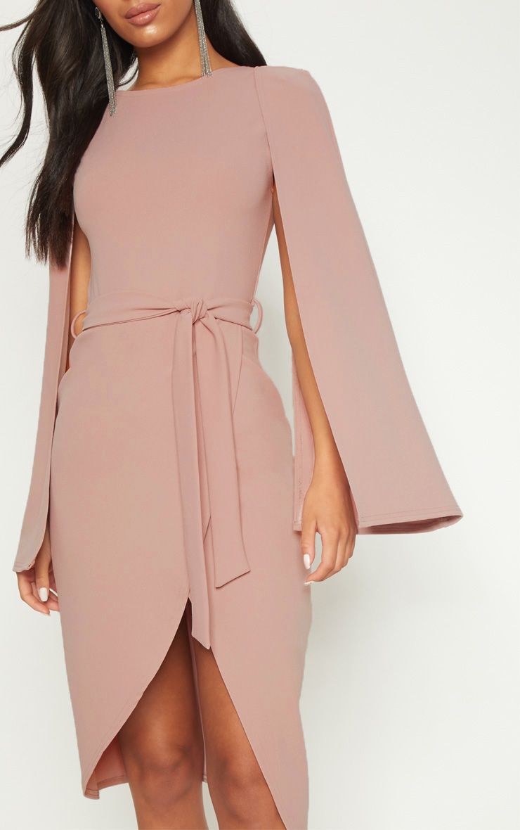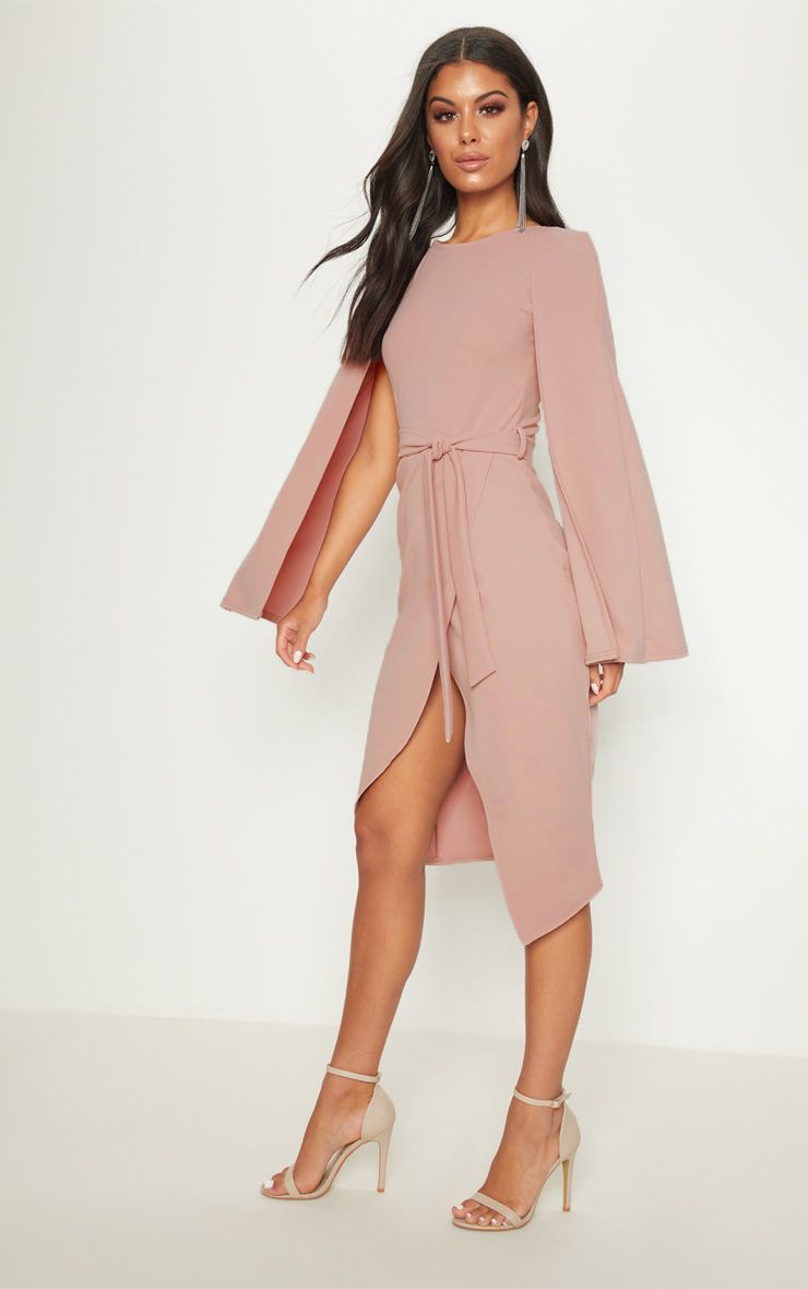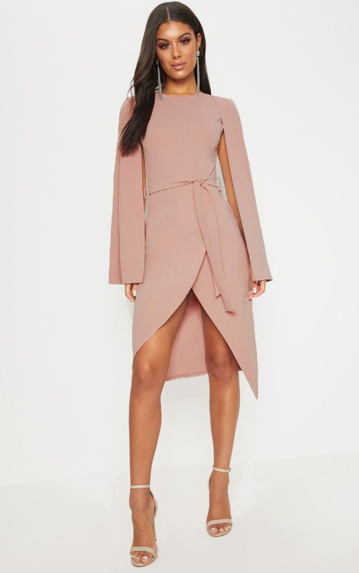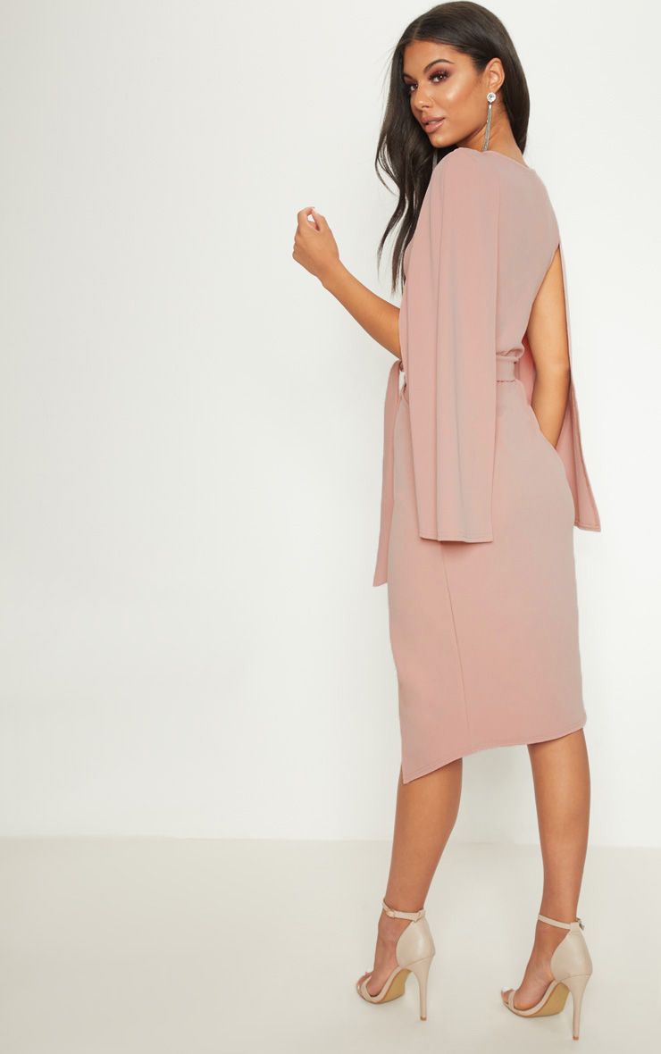 Sukienka Midi - wiązana - Z Pelerynką - Ciemny Róż