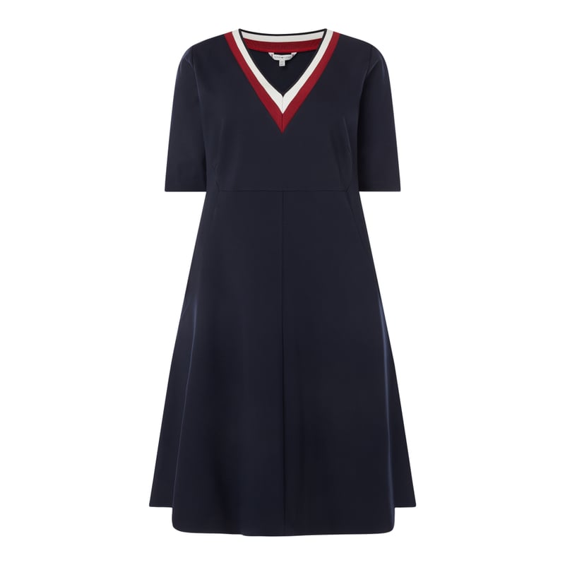 Sukienka PLUS SIZE damska Tommy Hilfiger Curve, Mieszanka wiskozy z dodatkiem streczu, Taliowany krój, Dekolt w serek, Rękaw o dł. 1/2, Rozkloszowana spódnica, Boczne wpuszczane kieszenie, Długość tyłu w rozmiarze 46: 103 cm