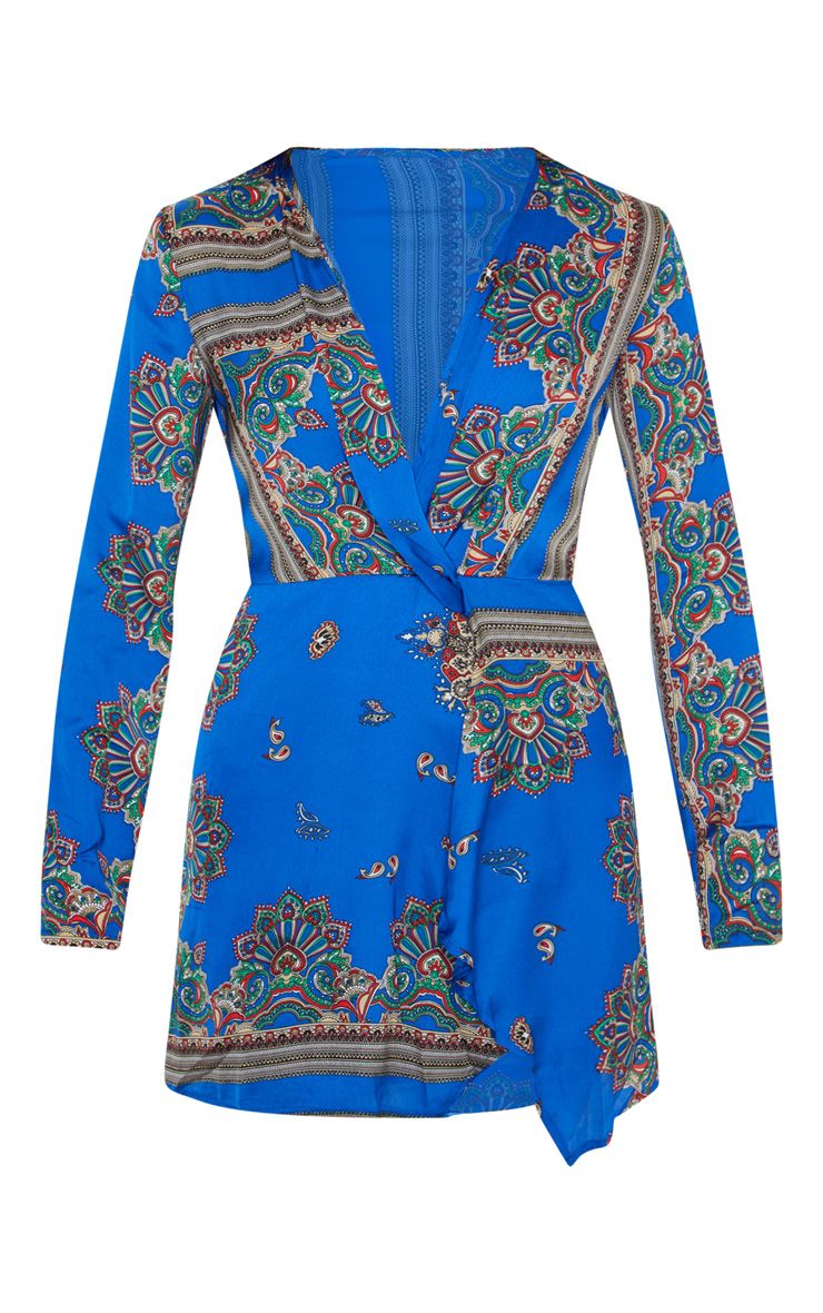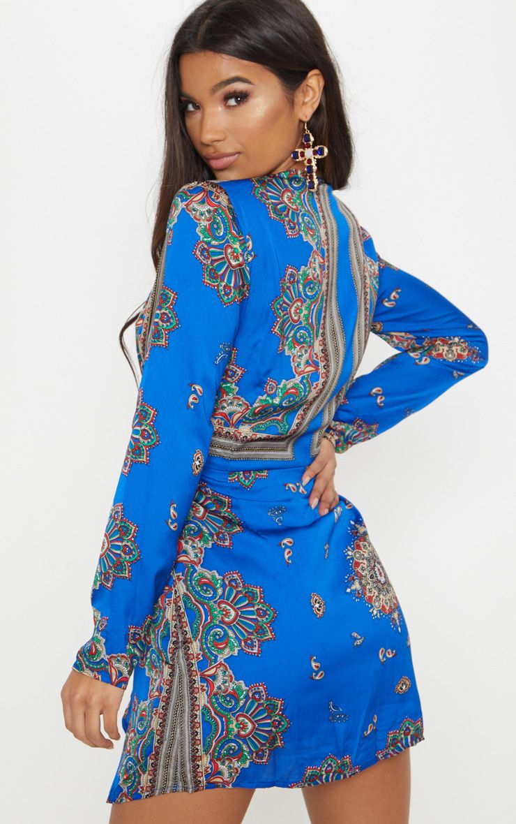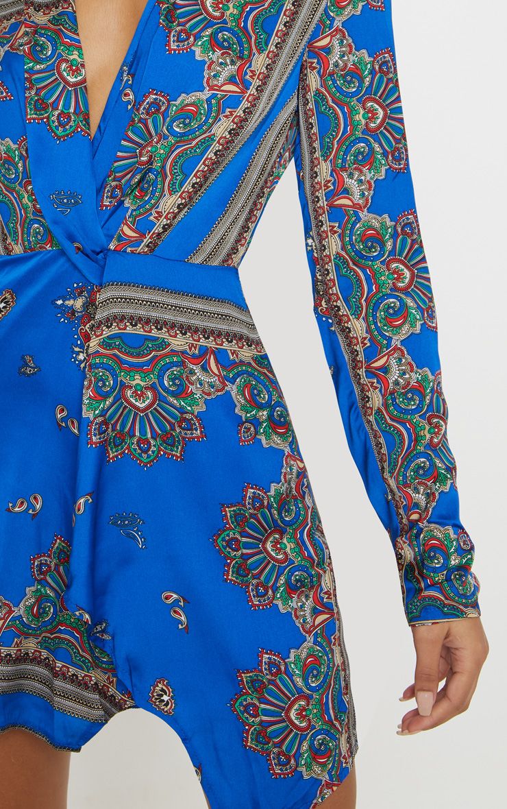 Sukienka Satynowa z Długim Rękawem - Orientalny Kobalt