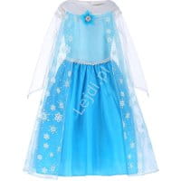Błękitno biała sukienka dla dziewczynki z pelerynką. Strój karnawałowy FROZEN.