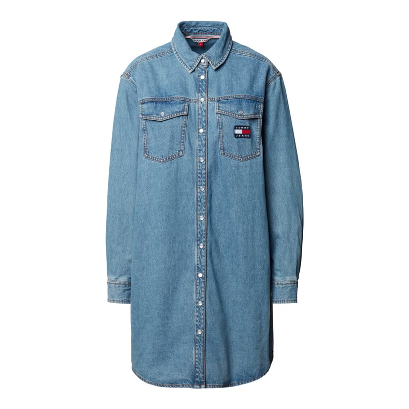 Sukienka jeansowa damska Tommy Jeans, Czysta bawełna, Prosty krój, Wykładany kołnierz, Listwa guzikowa, Kieszenie na piersi, Boczne wpuszczane kieszenie, Zaokrąglony dół, Wydłużony tył, Długość tyłu w rozmiarze S: 93 cm, Szerokość klatki piersiowej w rozmiarze S: 56 cm, Długość rękawa w rozmiarze S: 57 cm