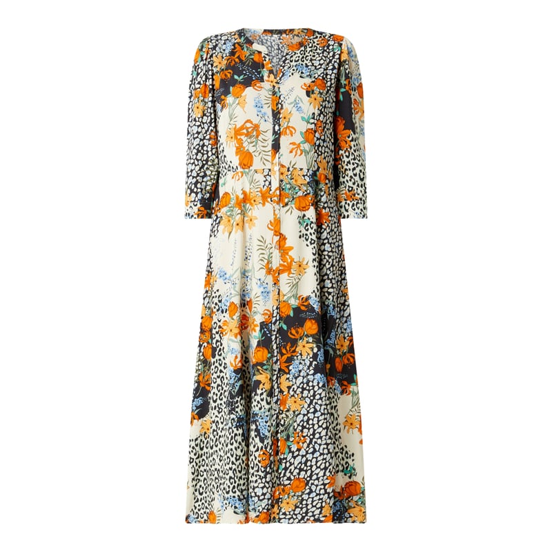 Sukienka koszulowa damska soyaconcept, Czysta wiskoza , Taliowany krój , Różne wzory , Kołnierz z lamówką, Listwa guzikowa , Rękawy o dł. 3/4 z mankietami na guziki, Rozkloszowana spódnica , Drobne marszczenia, Długość tyłu w rozmiarze S: 129 cm