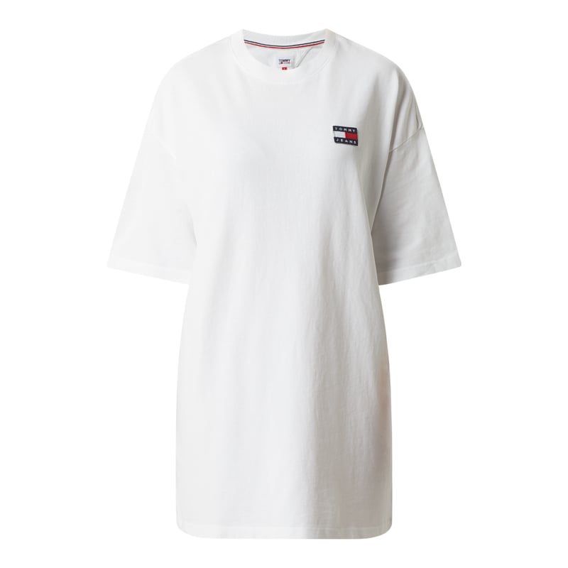 Sukienka koszulowa damska Tommy Jeans, Czysta bawełna ekologiczna, Krój rozkloszowany, Okrągły dekolt, Obniżone ramiona, Rękaw o dł. 1/2, Logo, Długość tyłu w rozmiarze S: 84 cm