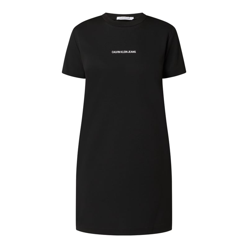 Sukienka koszulowa damska Calvin Klein Jeans, Mieszanka materiałów z dodatkiem wiskozy i streczu, Lekko rozkloszowany krój, Okrągły dekolt, Krótkie rękawy, Pasek z logo z boku, Długość tyłu w rozmiarze S: 82 cm