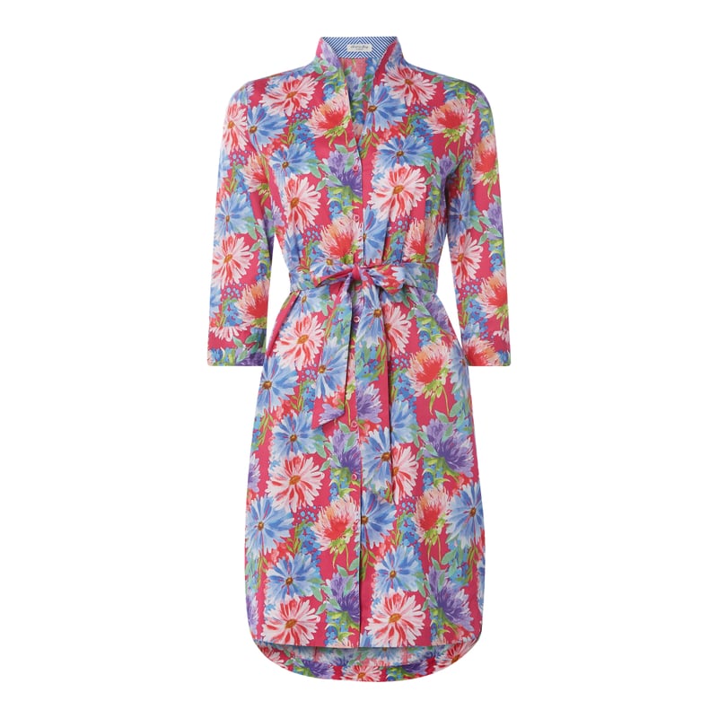 Sukienka koszulowa damska Christian Berg Women, Czysta bawełna , Dopasowany krój , Kwiatowy wzór , Spiczasty dekolt ze stójką, Listwa guzikowa, Rękawy o dł. 3/4 z mankietami na guziki, Pasek w talii, Długość tyłu w rozmiarze 36: 98 cm, Długość rękawa w rozmiarze 36: 47 cm