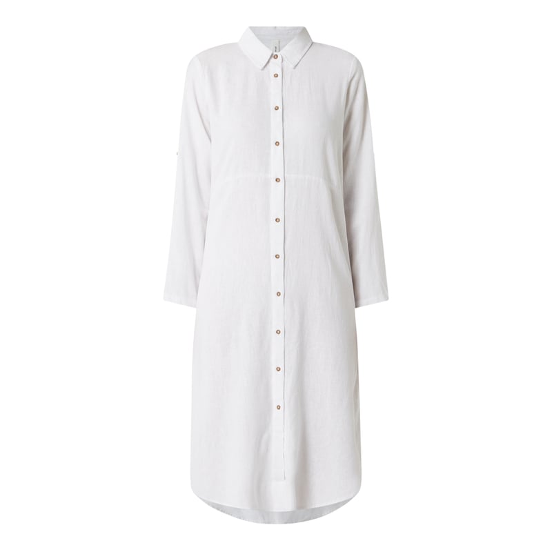 Sukienka koszulowa damska soyaconcept, Mieszanka lnu i wiskozy, Krój rozkloszowany, Wykładany kołnierz, Regulowana długość rękawa , Długie rękawy, Listwa guzikowa, Rozcięcia po bokach , Długość tyłu w rozmiarze S: 118 cm, Długość rękawa w rozmiarze S: 60 cm