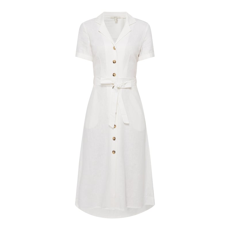 Sukienka koszulowa damska Esprit, Mieszanka lnu i wiskozy , Taliowany krój , Kołnierz z połami, Listwa guzikowa , Krótkie rękawy z przeszytą zakładką , Przeszyty pasek w talii do wiązania , Rozkloszowana spódnica , Wpuszczane kieszenie , Długość tyłu w rozmiarze 36: 117 cm