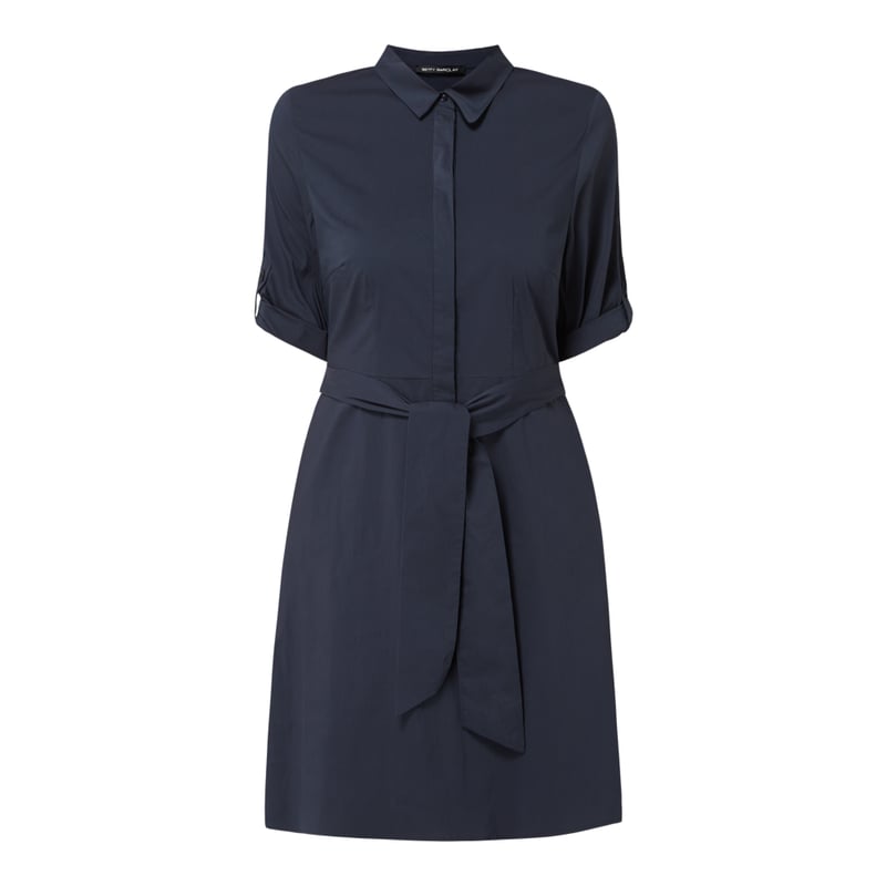 Sukienka koszulowa damska Betty Barclay, Mieszanka bawełny z dodatkiem streczu , Taliowany krój , Wykładany kołnierz , Kryta listwa guzikowa , Rękaw o dł. 3/4 , Przeszyta zakładka na rękawie z patką na guzik , Szeroki, wiązany pasek w talii , Odznaczająca się, rozkloszowana spódnica , Boczne wpuszczane kieszenie , Długość tyłu w rozmiarze 38: 96,5 cm
