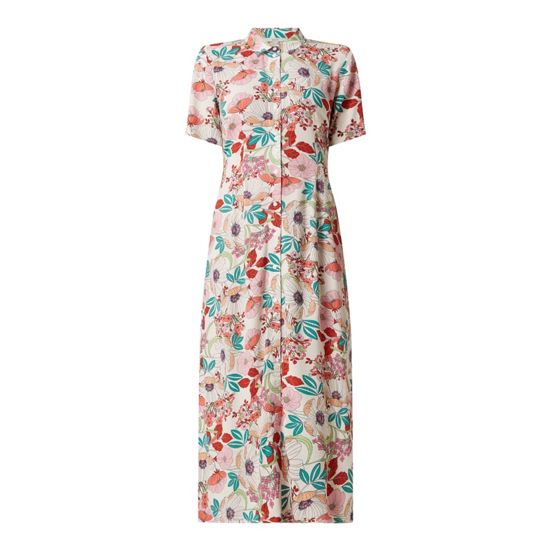 Sukienka midi damska Esprit, Czysta wiskoza , Taliowany krój , Kwiatowy wzór , Wykładany kołnierz , Listwa guzikowa , Rozkloszowana spódnica , Wpuszczane kieszenie , Rozcięcia po bokach , Długość tyłu w rozmiarze S: 129 cm