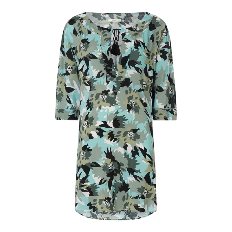 Sukienka plażowa damska Esprit, Czysta wiskoza (LENZING™ ECOVERO™), Lekko rozkloszowany krój , Wzór na całej powierzchni , Kołnierz z lamówką i wiązaniem , Rękaw o dł. 1/2, Krótkie rozporki po bokach , Długość tyłu w rozmiarze S: 87 cm