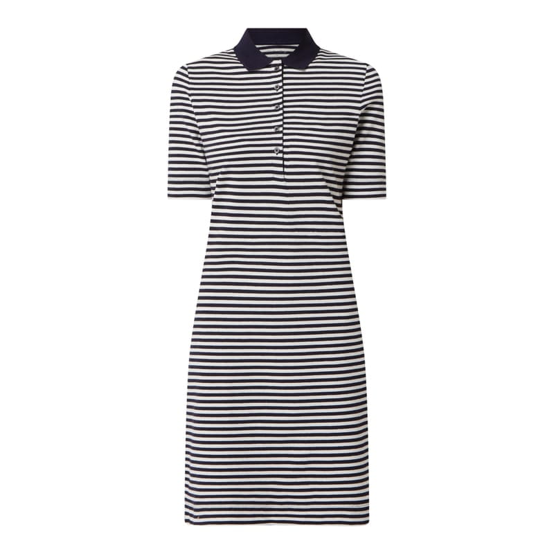 Sukienka polo damska Christian Berg Women, Mieszanka bawełny i elastanu, Taliowany krój, Wzór w paski, Kołnierzyk polo, Krótkie rękawy, Krótka listwa guzikowa, Długość tyłu w rozmiarze 36: 93 cm