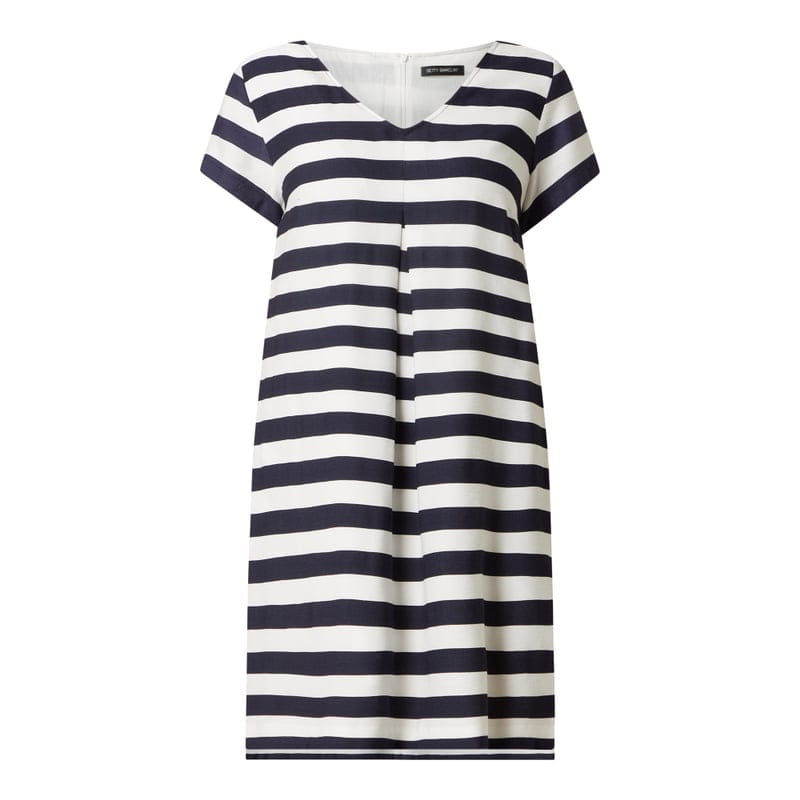 Sukienka damska Betty Barclay, Mieszanka wiskozy , Krój rozkloszowany , Wzór w paski , Dekolt w serek , Krótkie rękawy , Wpuszczane kieszenie, Kontrafałda , Lekka podszewka, Wszyty zamek błyskawiczny z tyłu, Długość tyłu w rozmiarze 36: 89 cm
