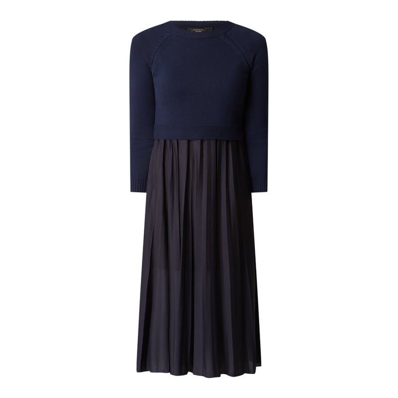 Sukienka damska Weekend Max Mara, Góra z mieszanki materiałów z dodatkiem wiskozy , Krój rozkloszowany , Efekt 2 w 1 , Okrągły dekolt , Raglanowe rękawy , Swobodnie opadająca spódnica z bawełny , Plisy , Długość tyłu w rozmiarze S: 122 cm