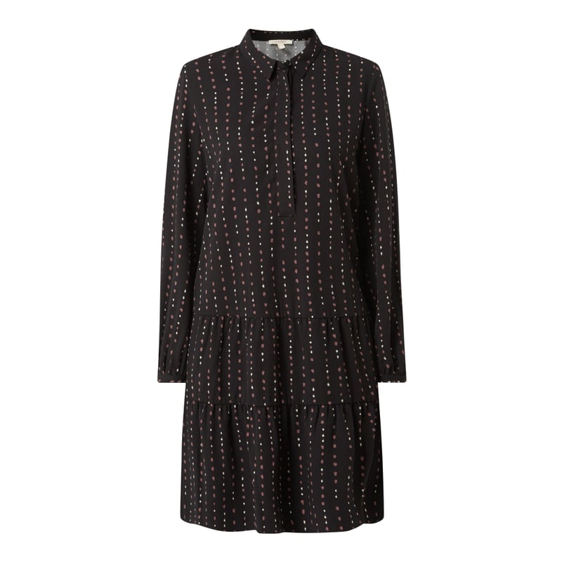 Sukienka damska Esprit, Czysty lyocell , Krój rozkloszowany , Wzór na całej powierzchni , Wykładany kołnierz, Krótka listwa guzikowa z plisą , Rękawy z mankietami na guziki , Odznaczająca się spódnica ze szwem działowym i drobnymi marszczeniami , Długość tyłu w rozmiarze 36: 98 cm , Długość rękawa w rozmiarze 36: 61 cm