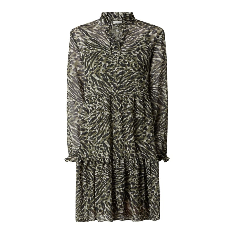 Sukienka damska Christian Berg Women, Poliester z recyklingu, Krój rozkloszowany, Stopniowanie, Wzór na całej powierzchni, Falbaniasta stójka, Wiązane wycięcie w kształcie łezki, Nieprzejrzysta halka , Długość tyłu w rozmiarze 36: 100 cm, Długość rękawa w rozmiarze 36: 63 cm