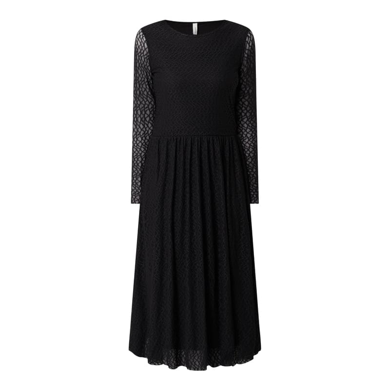 Sukienka damska soyaconcept , Mieszanka materiałów z dodatkiem streczu , Taliowany krój, Wzór na całej powierzchni z efektem podpalania , Okrągły dekolt, Długie rękawy , Rozkloszowana spódnica , Lekka halka, Długość tyłu w rozmiarze S: 117 cm, Długość rękawa w rozmiarze S: 57 cm