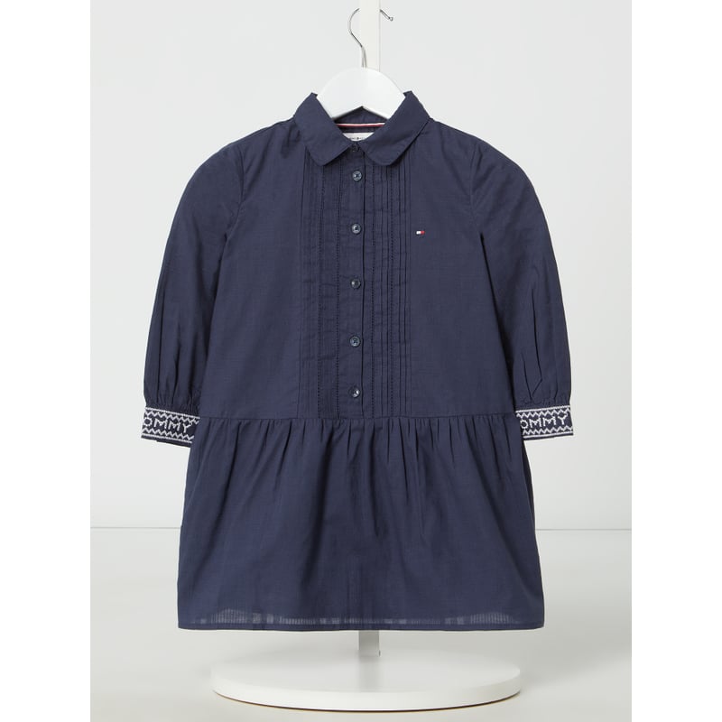 Sukienka dziecięca Tommy Hilfiger, Czysta bawełna , Krój rozkloszowany , Wykładany kołnierz , Listwa guzikowa na górze , Długie rękawy z brzegiem w kontrastowym kolorze, Zaszewki, Detale z logo , Drobne marszczenia , Długość tyłu w rozmiarze 104: 52 cm, Długość rękawa w rozmiarze 104: 32 cm