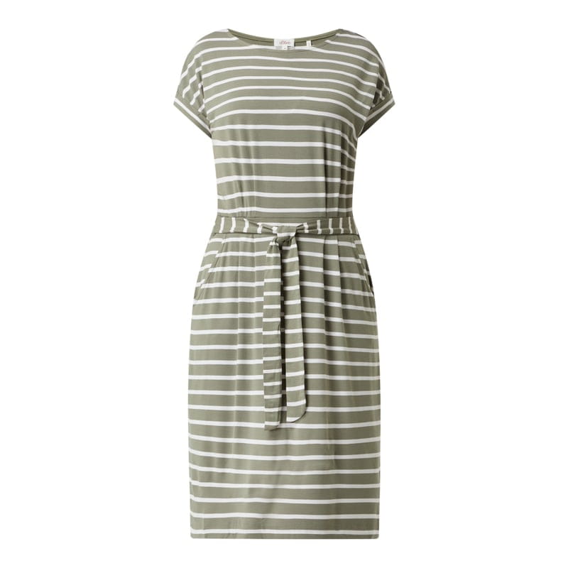 Sukienka damska s.Oliver RED LABEL, Mieszanka wiskozy i elastanu , Taliowany krój , Dżersej , Wzór w paski , Okrągły dekolt , Pasek wiązany w talii , Lekko rozkloszowana spódnica , Długość tyłu w rozmiarze 36: 107 cm