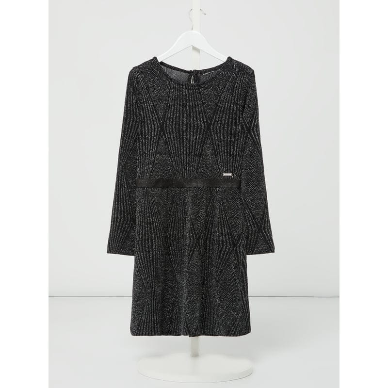 Sukienka młodzieżowa GUESS , Miękki, lekko elastyczny materiał z efektowną przędzą , Taliowany krój , Okrągły dekolt , Elastyczny pasek w talii , Odznaczająca się, rozkloszowana spódnica , Logo , Wycięcie w kształcie łezki zapinane na guzik z tyłu , Długość tyłu w rozmiarze 140: 75 cm , Długość rękawa w rozmiarze 140: 53 cm