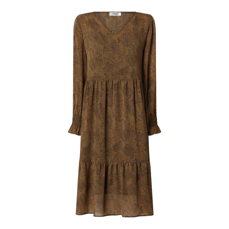 Sukienka damska Moss Copenhagen , Lekki materiał , Krój rozkloszowany, Wzór graficzny , Dekolt w serek , Długie rozszerzane rękawy , Szwy działowe z marszczeniami , Długość tyłu w rozmiarze S: 112 cm , Długość rękawa w rozmiarze S: 63,5 cm