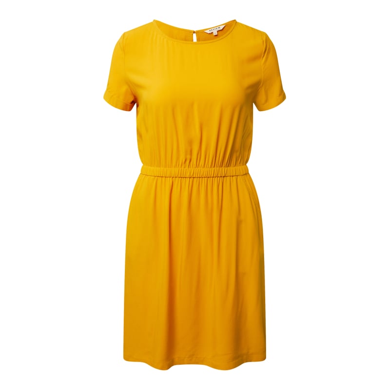 Sukienka damska REVIEW , Czysta wiskoza , Taliowany krój, Okrągły dekolt , Krótkie rękawy z zakładką , Gumka w talii , Rozkloszowana spódnica , Wpuszczane kieszenie w stylu francuskim , Wycięcie w kształcie łezki zapinane na guzik z tyłu , Długość tyłu w rozmiarze S: 85 cm