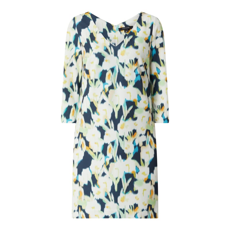 Sukienka damska comma, Krepa , Dopasowany krój , Kwiatowy wzór , Dekolt w serek , Rękaw o dł. 3/4 , Wszyty zamek błyskawiczny z tyłu , Długość tyłu w rozmiarze 36: 90 cm