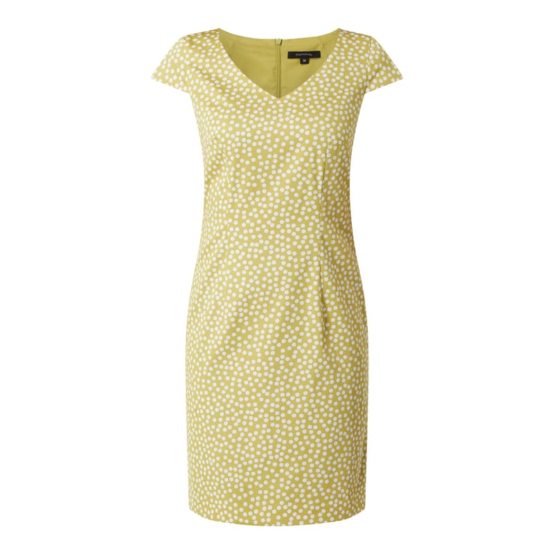 Sukienka damska comma , Mieszanka bawełny i elastanu , Dopasowany krój , Wzór na całej powierzchni , Dekolt w serek , Krótkie rękawy , Wszyty zamek błyskawiczny z tyłu , Rozporek , Lekka halka , Długość tyłu w rozmiarze 36: 92 cm