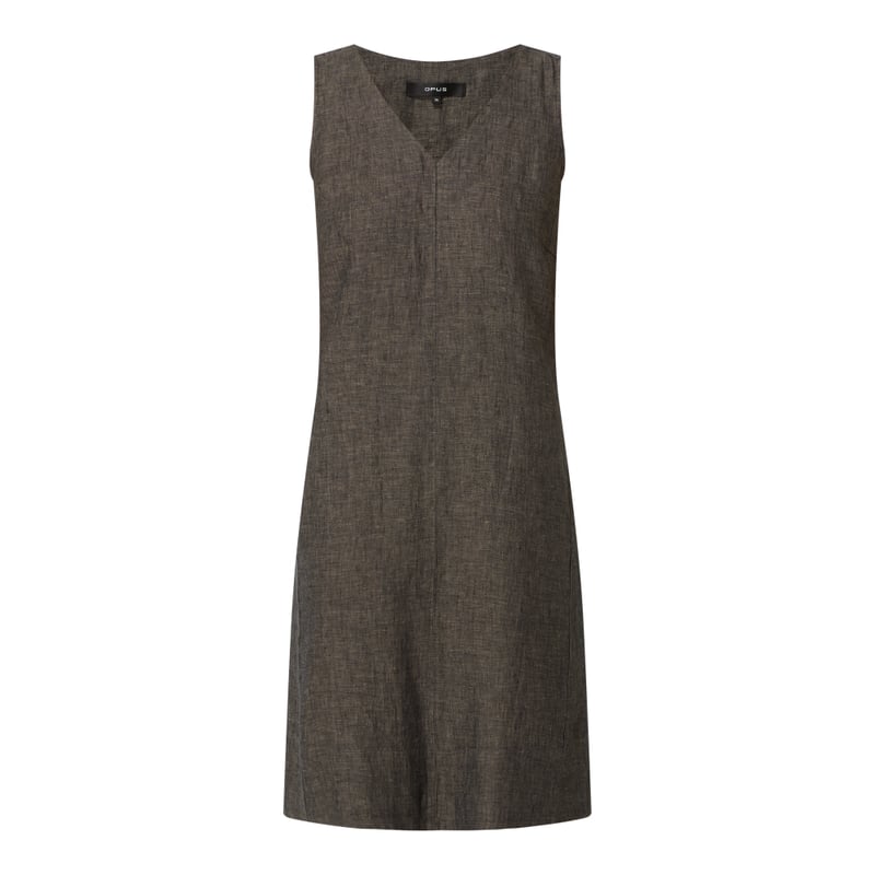 Sukienka damska OPUS, Czysty len , Krój rozkloszowany , Dekolt w serek , Boczne wpuszczane kieszenie , Długość tyłu w rozmiarze 36: 92 cm