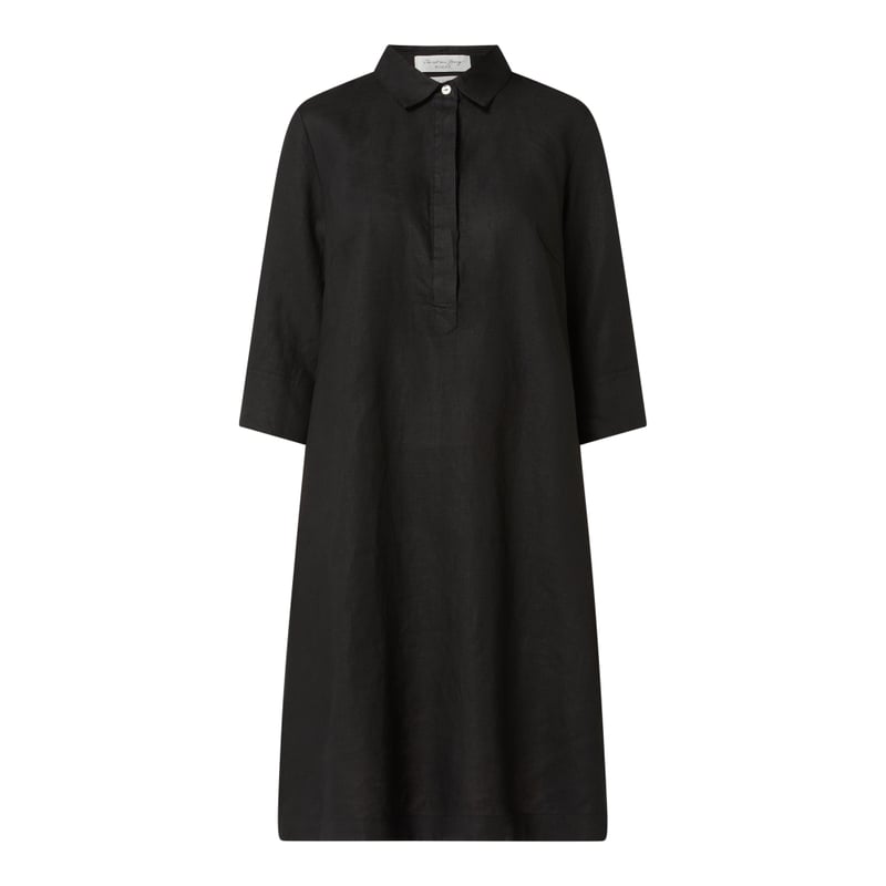 Sukienka damska Christian Berg Women, Czysty len, Lekko rozkloszowany krój, Wykładany kołnierz, Krótka listwa guzikowa z plisą, Rękaw o dł. 1/2, Boczne wpuszczane kieszenie, Kontrafałda z tyłu, Długość tyłu w rozmiarze 36: 94 cm