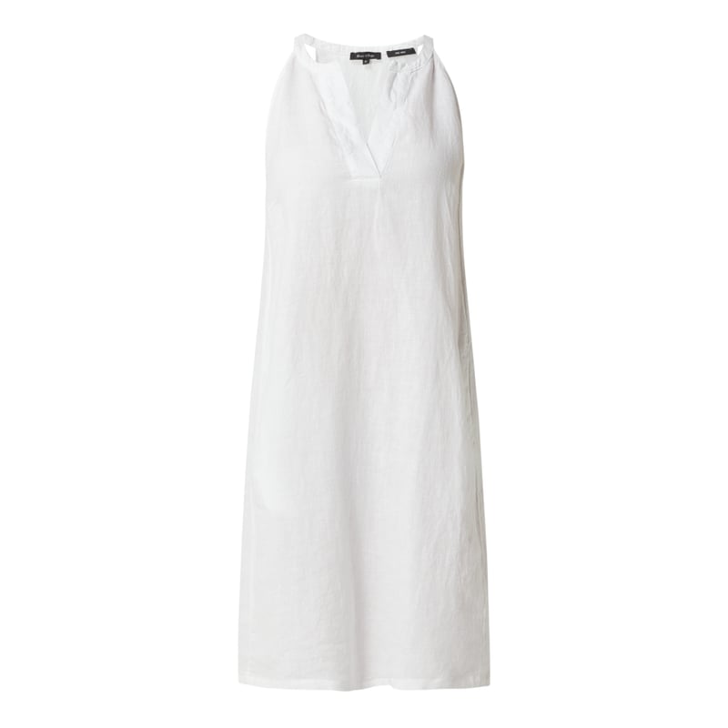 Sukienka damska MARC O’POLO, Czysty len, Taliowany krój, Kołnierz z lamówką , Bez rękawów, Boczne wpuszczane kieszenie, Rozkloszowana spódnica, Długość tyłu w rozmiarze 36: 92 cm