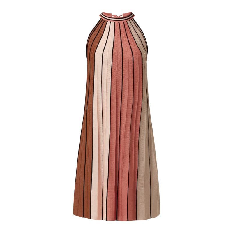 Sukienka damska s.Oliver BLACK LABEL, Mieszanka wiskozy , Rozkloszowany krój bez rękawów , Prążkowana faktura , Wzór w paski , Amerykański dekolt , Wycięcie w kształcie łezki z wiązaniem na plecach , Długość tyłu w rozmiarze 36: 100 cm