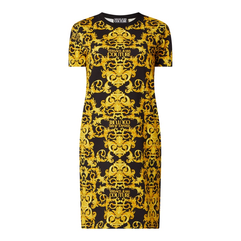Sukienka damska Versace Jeans Couture, Mieszanka bawełny i elastanu , Przylegający krój , Ornamentalny wzór, Okrągły dekolt , Nadruki z logo , Made in Italy , Długość tyłu w rozmiarze 36: 89 cm