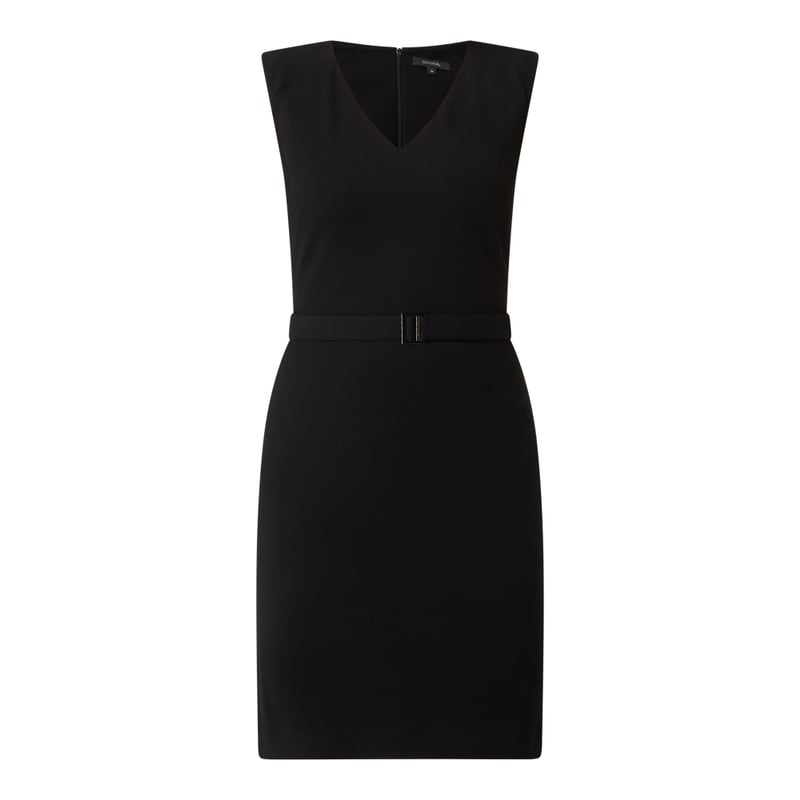 Sukienka damska comma, Mieszanka wiskozy z dodatkiem streczu , Dopasowany krój , Dekolt w serek , Poduszki na ramionach , Pasek w talii , Wszyty zamek błyskawiczny z tyłu , Długość tyłu w rozmiarze 36: 94 cm